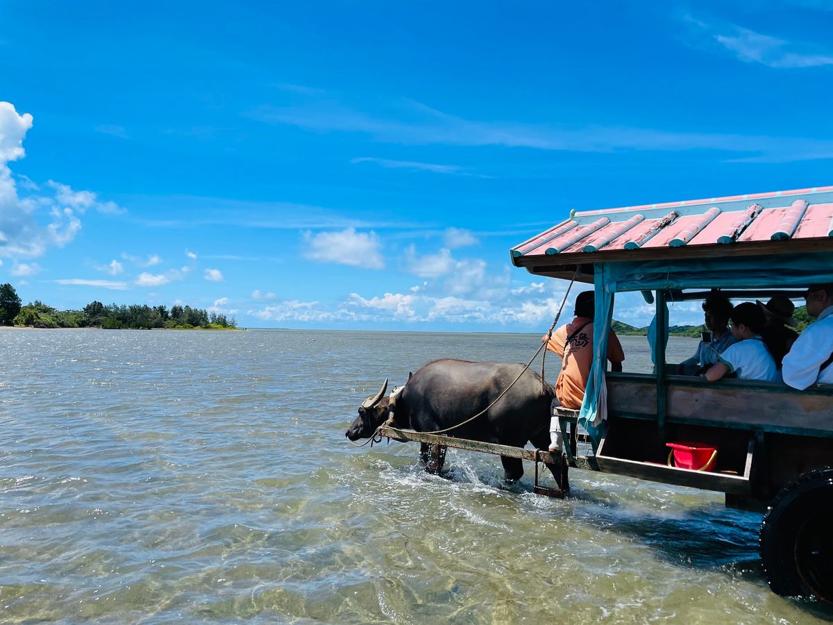 竹富島、由布島、西表島の離島ツアーに参加しました!2泊3日の2日目に参加しましたがフェリー、水牛車、バスと色々乗り換えで変化があって良かったです。竹富島でのフリータイムが暑さのせいで予定より一本早いフェリーで帰りました。沖縄の暑さ舐めてましたよ!皆様も暑さ対策必須ですよ!フリータイム早めたお陰で滞在ホテルでゆっくり過ごせました。弾丸ツアーも悪く無いですがたまにはのんびりも良かったですよ!水牛のかなでちゃんお疲れ様でした。