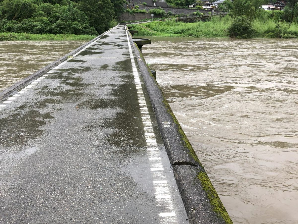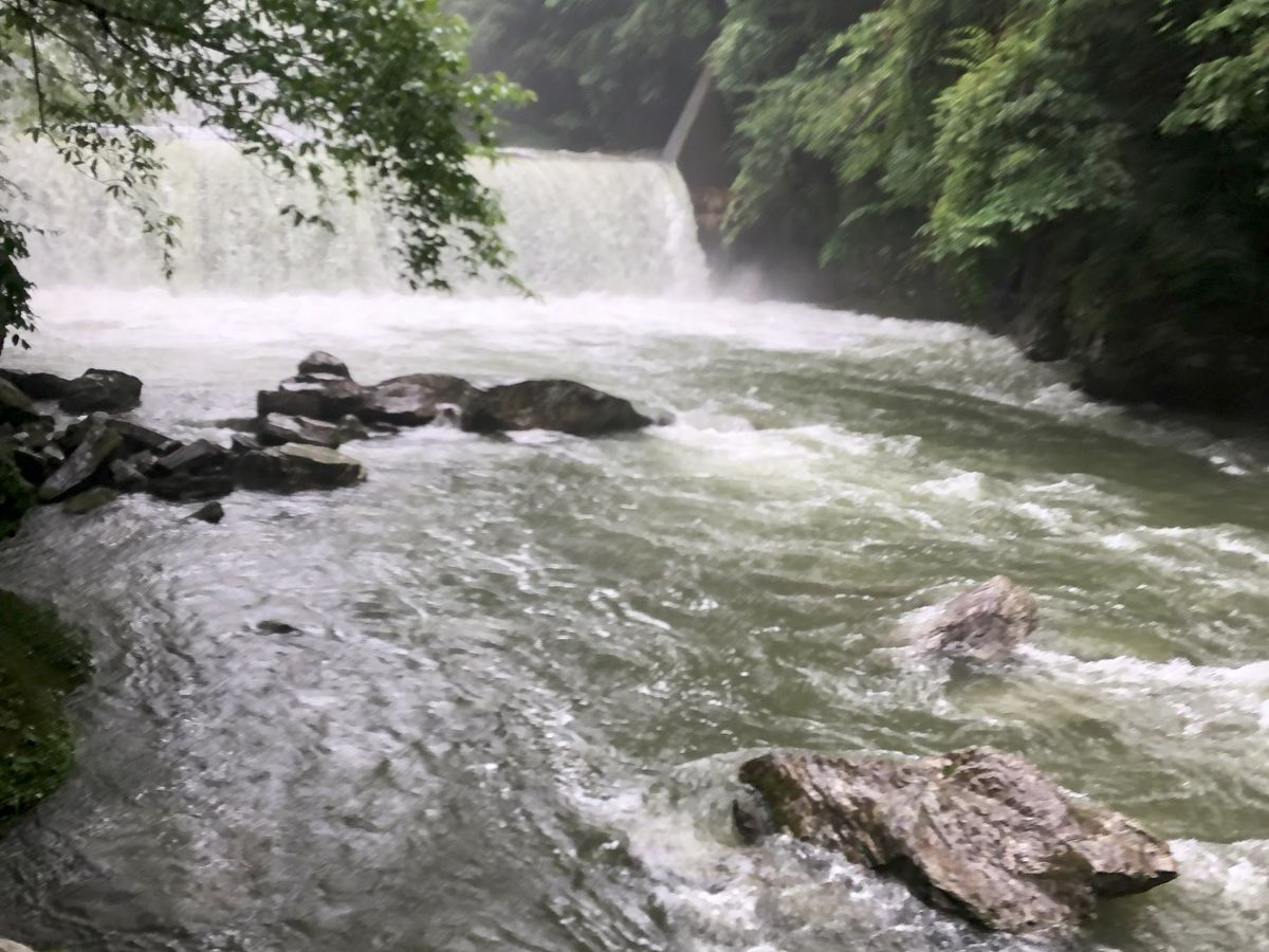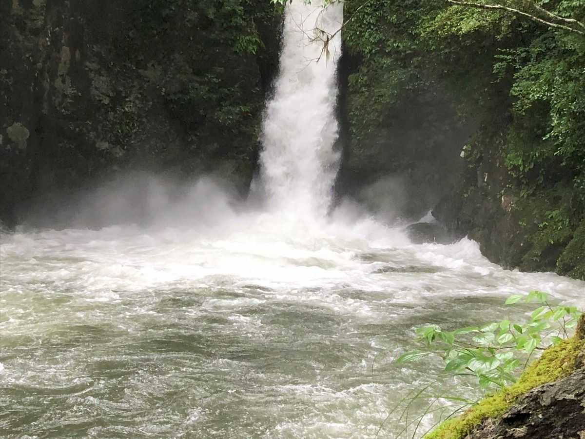 運転手さん(名前は伏せさせて頂きます)は大変申し訳なさそうに、「雨が降って下流がグレーになっても、上流の方は悪くてもグリーンですから。」と仰ってグレーで無いだろう場所をそれは丁寧に幾つも廻って下さいました。 生憎あまりの記録的な豪雨だったため、行く所行く所全てグレーでした。 しかし、天気は勿論運転手さんのせいではありませんし、ある意味記録的な全くブルーが見られない仁淀川を見られたのは凄かったのかもしれません。 運転手さんは、「普段は石清水程度の流れが全て滝になっている。」と仰り、初めて見る仁淀川の写真を撮られていました。