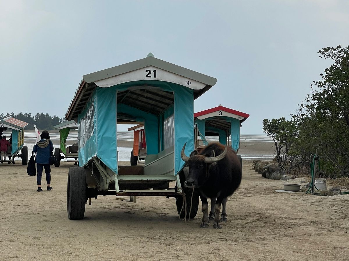 水牛とバスプランでマングローブはボートに乗って