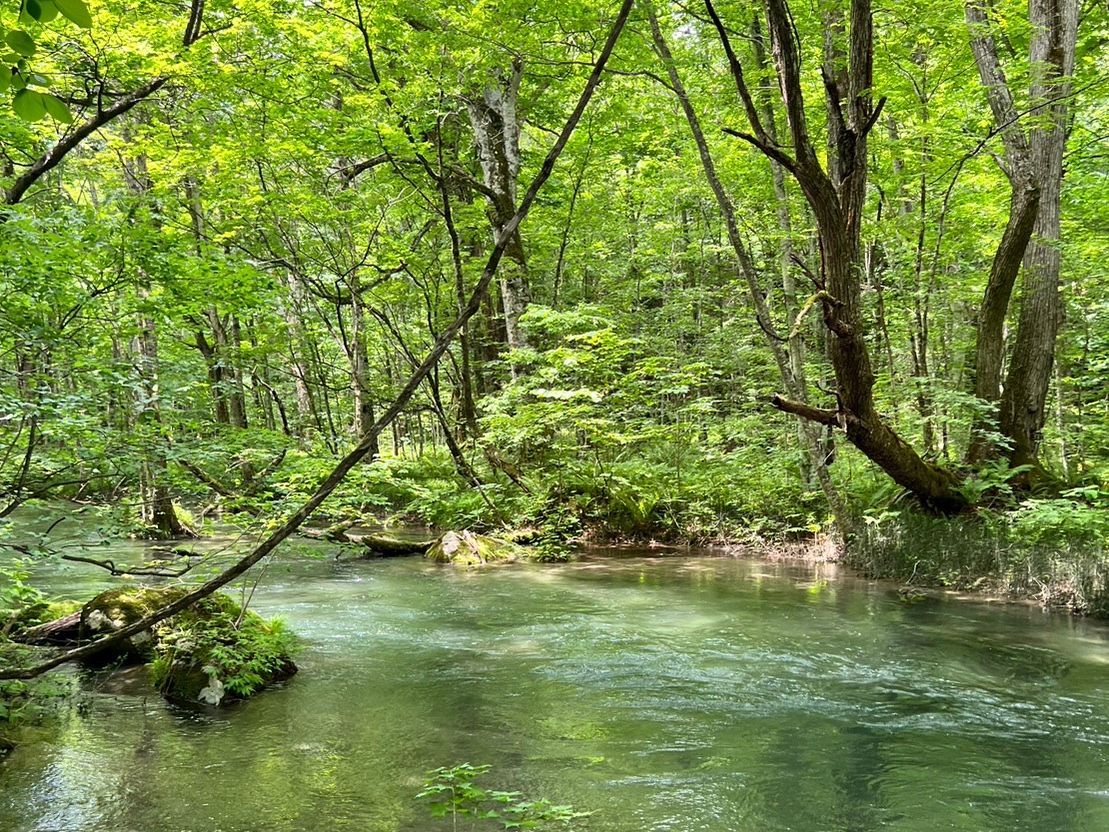 よくTVのCMなんかで見るあの美しい渓流散策に念願かなってやっと行くことができました。しかも、私の大好きな新緑の季節に!