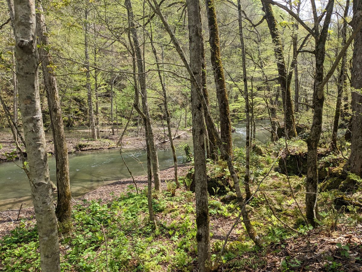 ブナの新緑の中、清流の音や濡れた空気を感じながら、ガイドさんが用意してくださったスープで昼食をとり、とても癒されました。