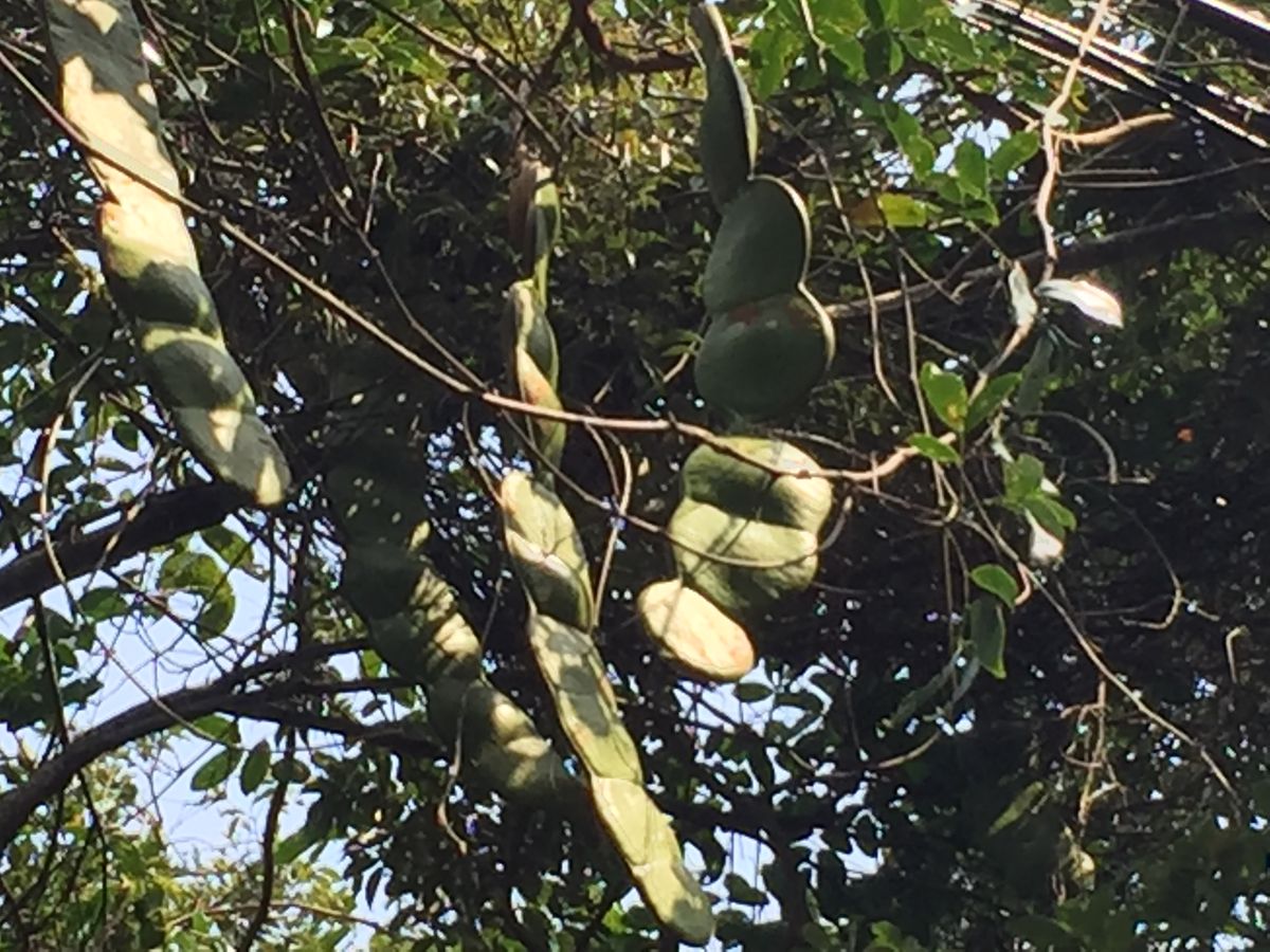 最後に予定にはなかった、もだまの木を見せてもらいました。もだまはジャックと豆の木の元になった木だそうです。3年ぶりに実がなったということでわざわざ見せてもらったのですが、そこには元の木が一本しかないと思えないほどの横に伸び、山?を覆っていました!たまたま一本だけ芽が出たそうです。