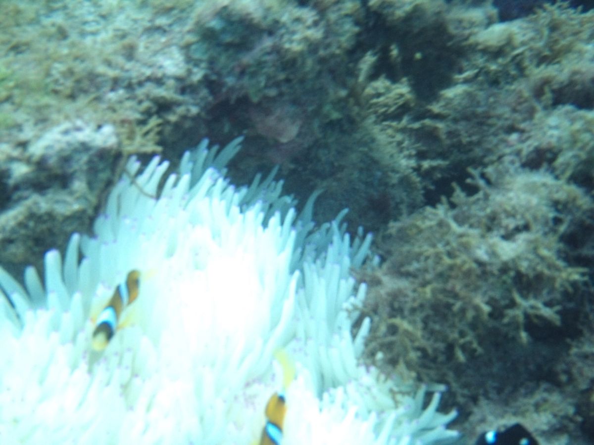 数分泳ぎ進んだ所からすぐにクマノミ、アオスズメダイ、ツノダシ、チョウチョウウオ、ブダイetc.水族館の熱帯魚コーナーで観る人気の魚達を見ることができました。