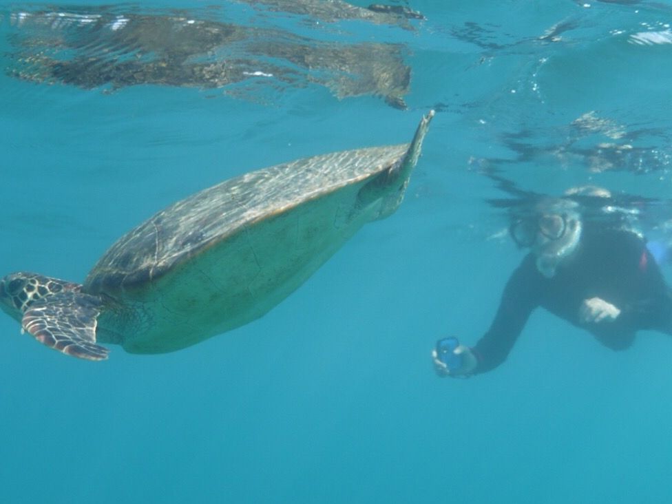 綺麗な海に、可愛いお魚さんたち、あとウミガメにも出逢えるようポイントポイントを案内してくれたり、シュノーケルの楽しさを教えてくれましたよ。