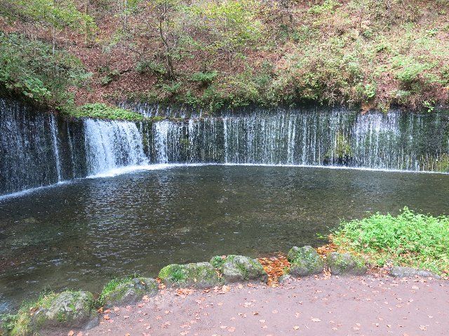 あいにくの天気のため見晴台では景色が見れなかったこともあって、タクシーの運転手さんから白糸の滝への訪問提案がありました。