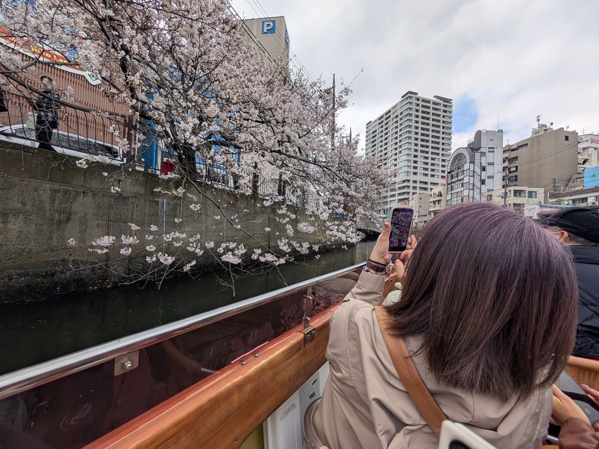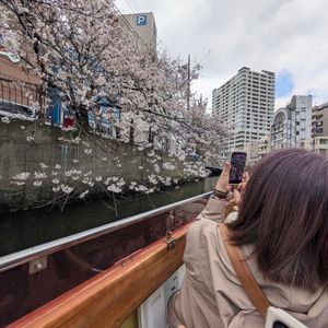 桜開花後4日目に参加しました。私たちを含めて2組の乗船でした。咲いている桜を探すクルーズでした。満開とは思っていませんでしたが、もう少し咲いてることを期待していました。こればかりは仕方ないですね。満開の時に参加すれば、川面近くまで垂れ下がっている桜などを楽しめて、とても良かっただろうなと思いました。