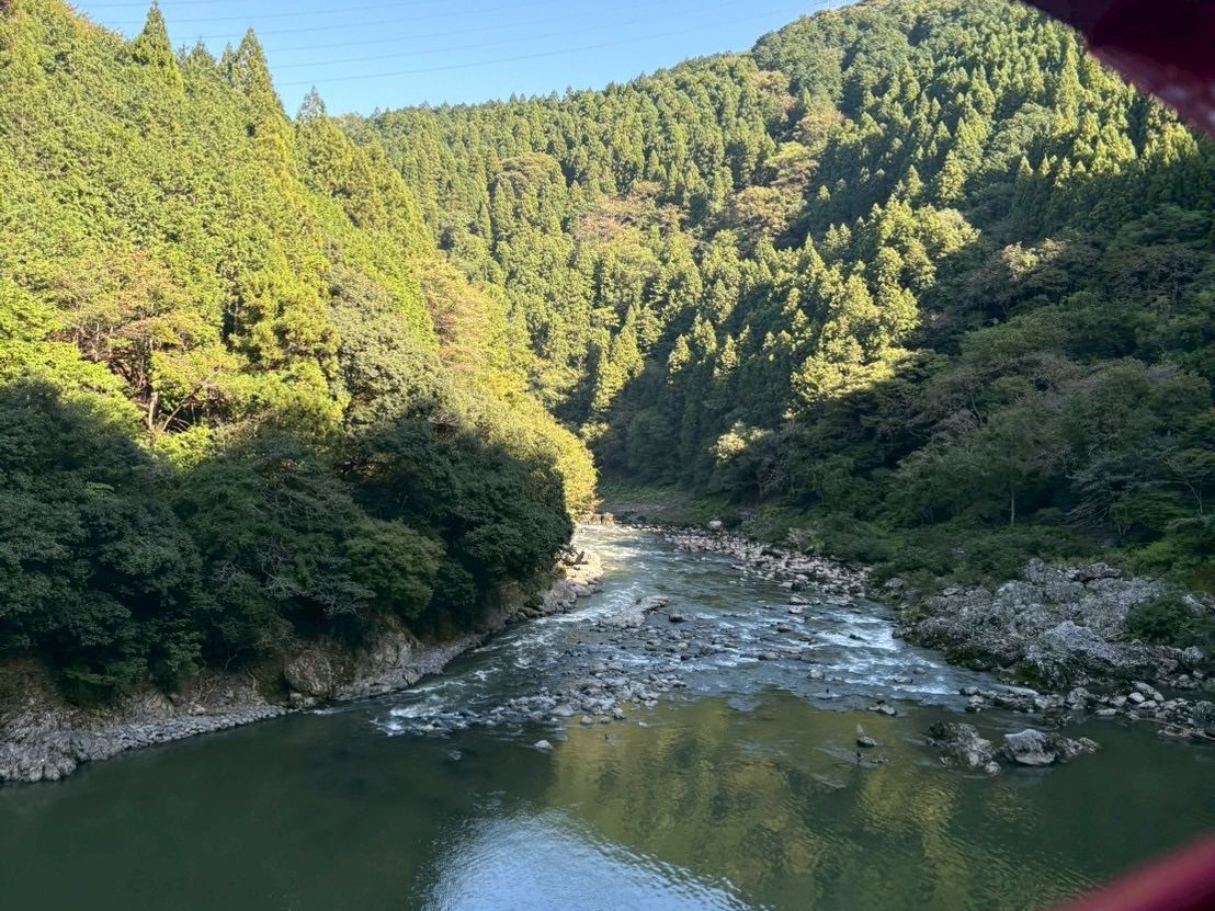 紅葉には少し早かったけど、保津川を眺めながら、列車に揺られてとてもうれしく楽しい時間を過ごすことができました。