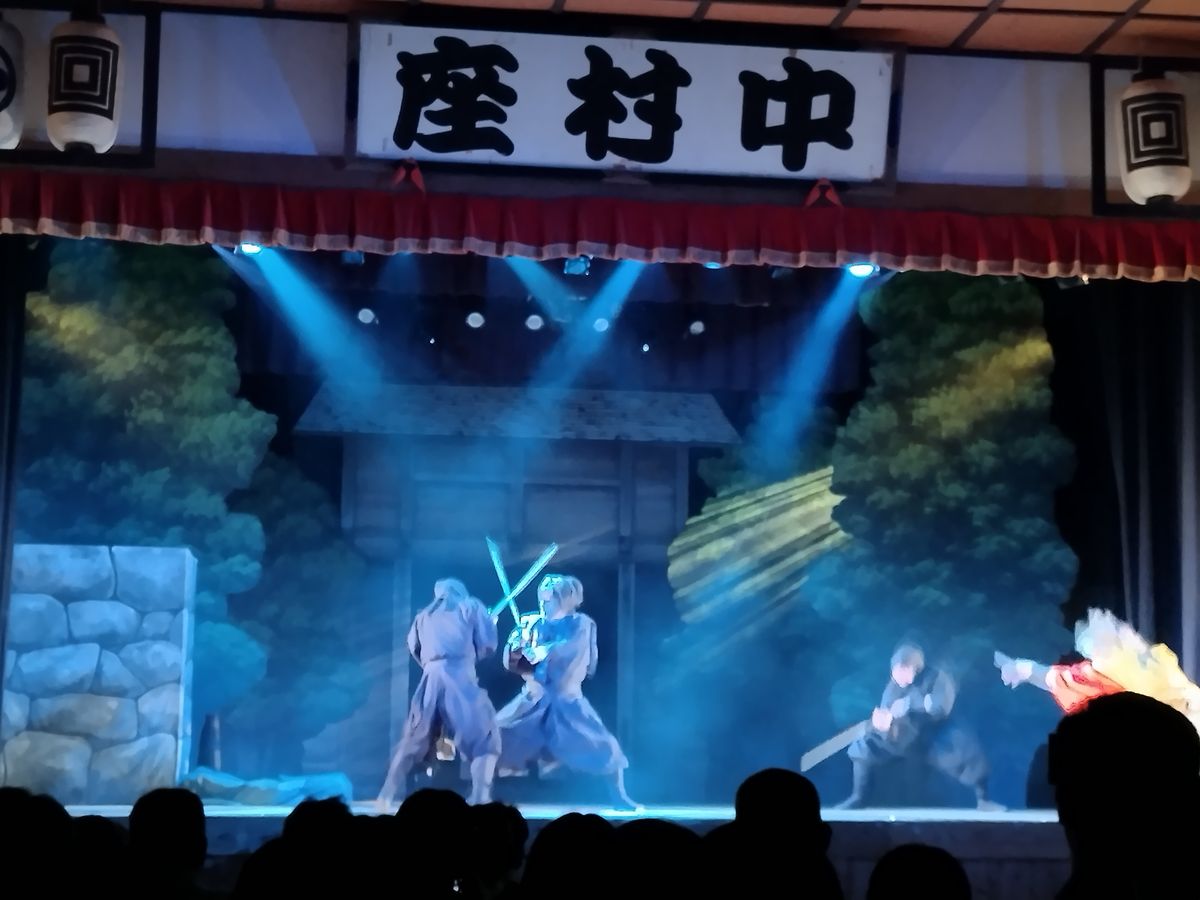 中は意外と混んでおり、お化け屋敷や忍者屋敷などのアトラクションはなんと60分待ちとのことでした。俳優さんが園内を案内してくださったり、芝居小屋で20分ほどのアクションたっぷりのお芝居を見られたり、何十人もの妖怪がうろうろしていたり、昭和レトロ感が漂っているものの、意外と面白くて楽しめました。食べ物屋さんもいろいろあって、テーマパークとしてはリーズナブルだし、美味しかったと思います。