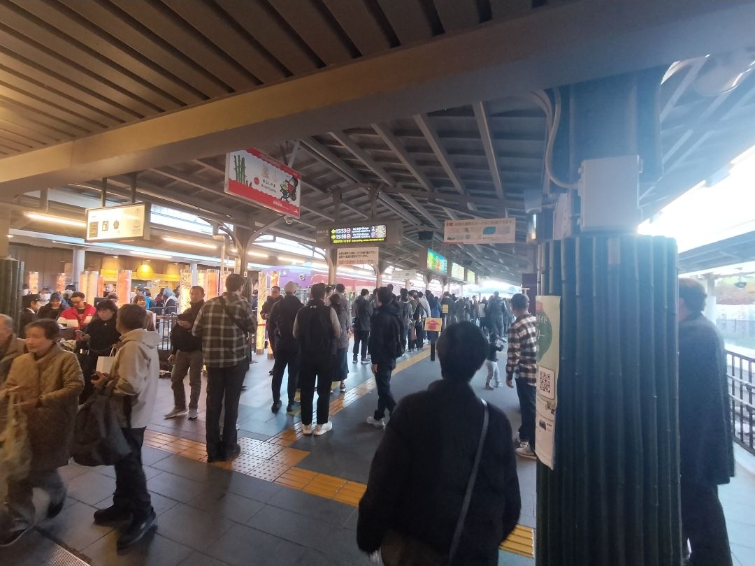 紅葉には少し早かったのですが、嵯峨野の駅はいっぱいでした。予約取っておいてほんとよかったです。先も決まっているのでゆっくり見ることができました。