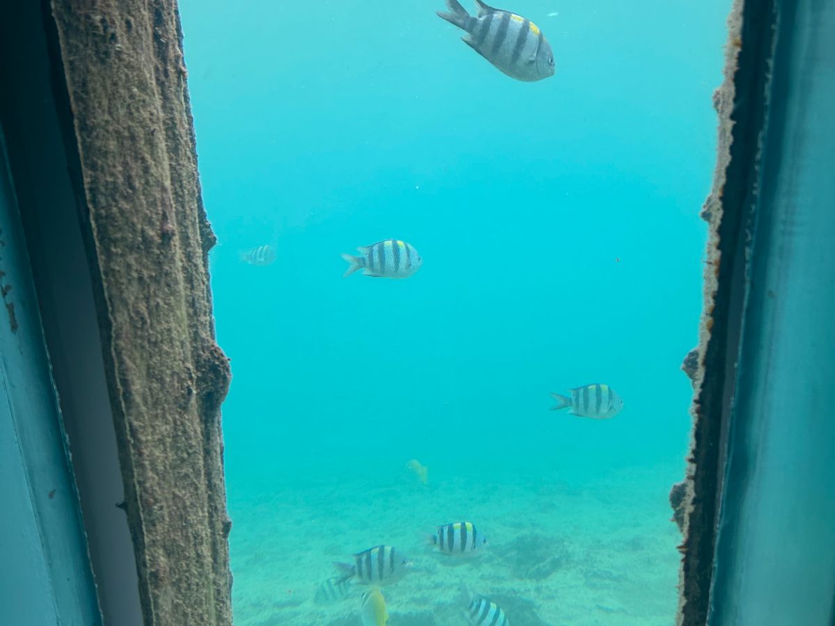 ただ、入り口から海中の見るところが別館となっており、少しだけ歩きます。屋根があったら助かりますが、外なので、少し濡れます。無料で使える傘もありますが、海風が強く、逆にささないほうがいいくらいでした。