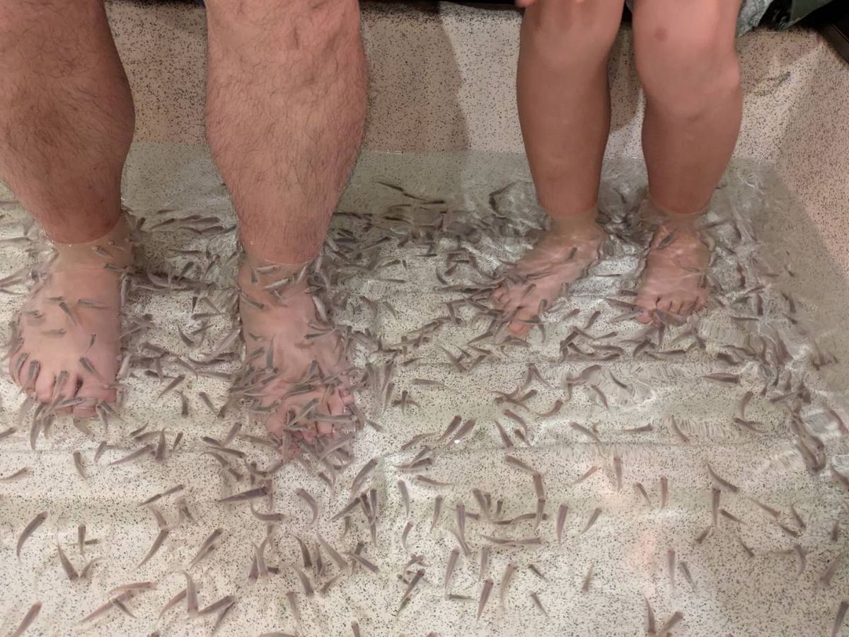 休憩を挟んだり、ドクターフィッシュで遊んだり(動画を撮っているのに、私たちの体験を見ながら近くで大きな声で騒ぐ外国の方がおられて少し迷惑でした)、マッサージを受けたり。