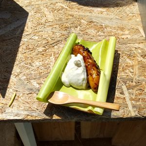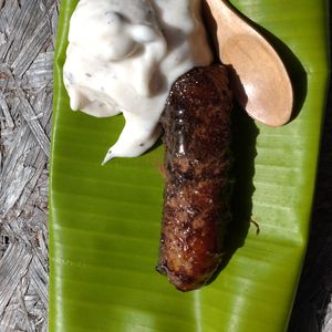 真夏の8月だったので、ものすごく暑かったですが、自分たちで作った焼き島バナナとジェラートが最高においしかったです。
