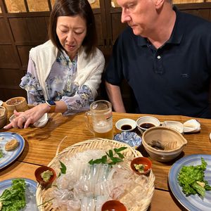 大事な人達を久しぶりの海外から迎えて、国内どこに行こうか?散々考えた挙句、益田に決めた。日本一の居酒屋「田吾作」と益田温泉「マスコス」さんがあるから。久しぶりの透明なイカとのご対面やイサキに煮物、松永牧場の足、大石さんのジャガイモ、お刺身も東京で食べたら1人数万はするであろう内容がドドんと出てくる。最初の煮物も野菜嫌いな外国のお客様はあらまあ、ペロリと平らげた。だからつまり美味しいのである。美味も美湯に国境無し。フライトは大変でしたがまたお客様を連れて行きます。ベルトラの特典をすっかり忘れて、それも凄いなぁ…お得な気分です。兎に角、一度、ここにご参加下さい。ありがとうございました。