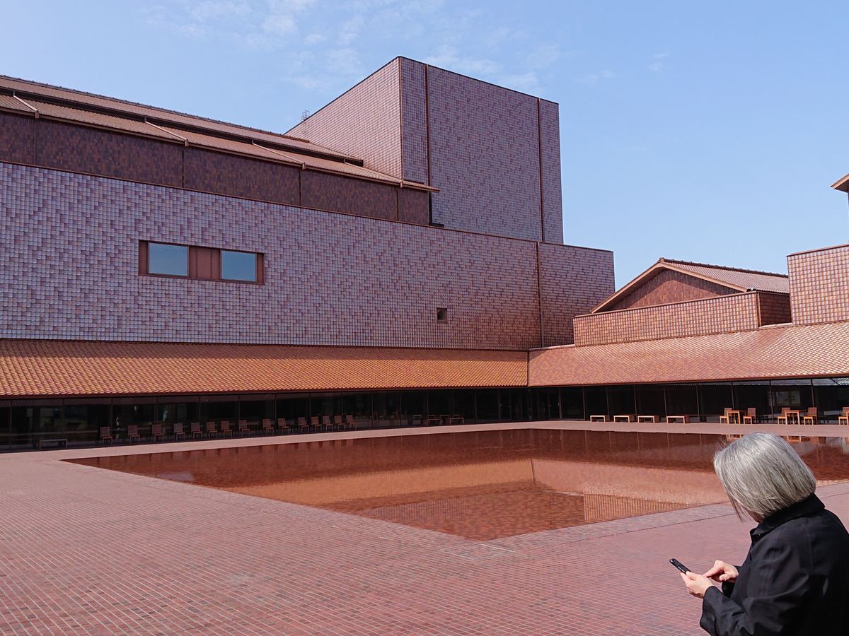 最初に行った芸術文化センターは屋根から壁面そして床まで、全て手作りの石州瓦で出来ていて圧倒されました!