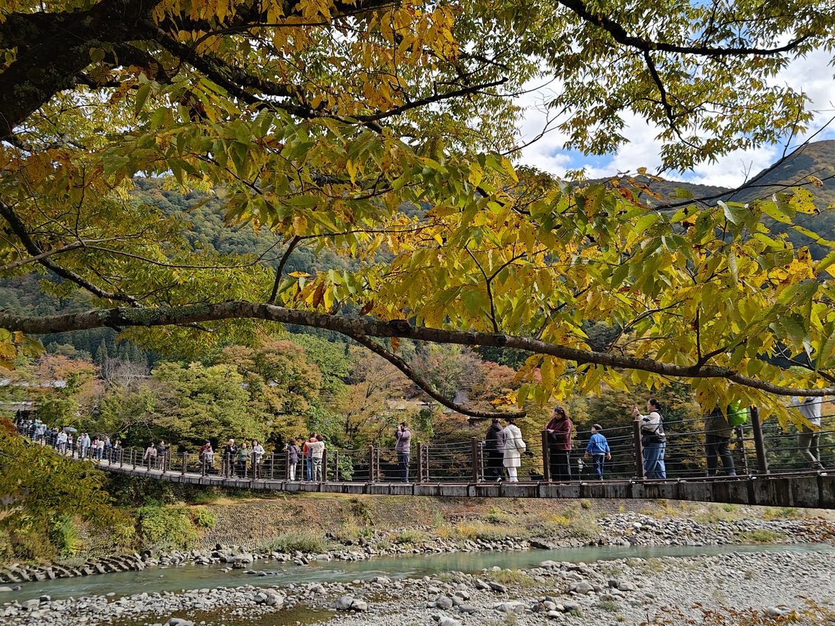 白川郷は規模も大きく、橋を渡るとお店も多く大きな合掌造りもあって散策も楽しいです。駐車場の隣の民家園の入場が付いていたのも嬉しかったです。