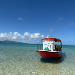 小型船でコバルトブルーの海を猛スピードで周囲の島の説明をしてくれたりご一緒になった方に写真を撮ってもらったりして幻の島上陸、写真撮影。シュノーケルの基本レクチャーがあり、慣れない人には浮きに捕まりながらクマノミ、カラフルな熱帯魚のポイントにシュノーケル。天気も良く最高でした。