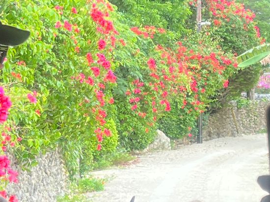 竹富島のお話を聞きながら、水牛車に揺られてゆっくり前に進んでいき、街並みの写真を撮ったり、沖縄の花や植物の写真を撮ったりしながら、のんびりとした時間を過ごしました。