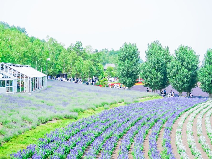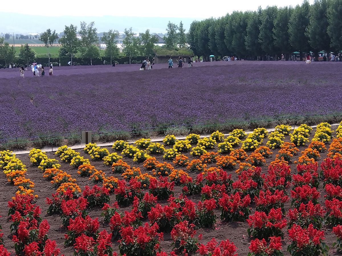 休日はもっともっと人が多いとガイドさんが言っていましたので、食事が取れなかったことを考えて軽く食べられるものを用意しておいた方がいいかもしれませんが、食事まではいかなくても富田ファームでお腹が膨れるお土産も売っていますので、飢えるというようなことはないと思います。