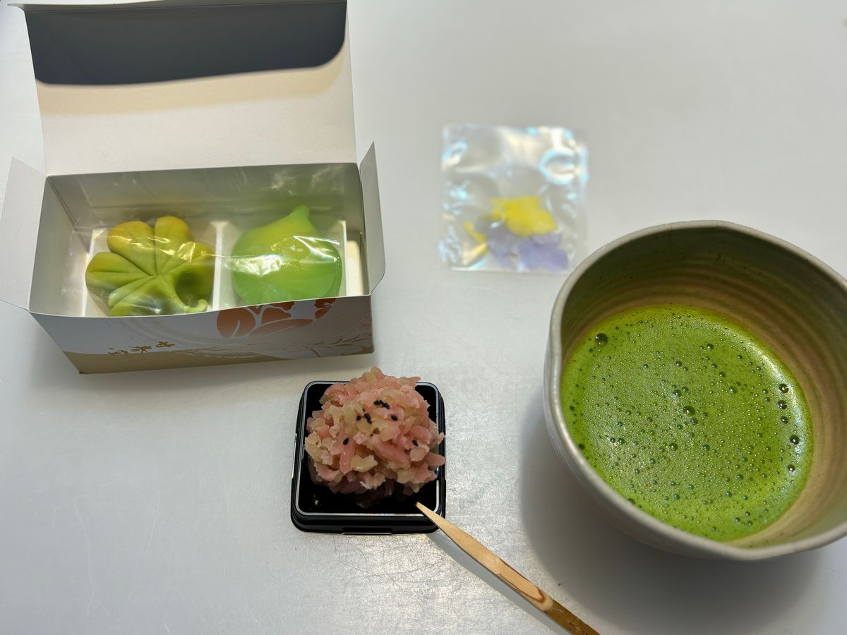 最後は立てていただいたお抹茶と共に製作した生菓子を一ついただきましたが、甘さ控えめで上品なお味でした。旅行最終日で体験したので、残りの生菓子はお土産で家族に食べてもらうことが出来ました。良い思い出になりました。