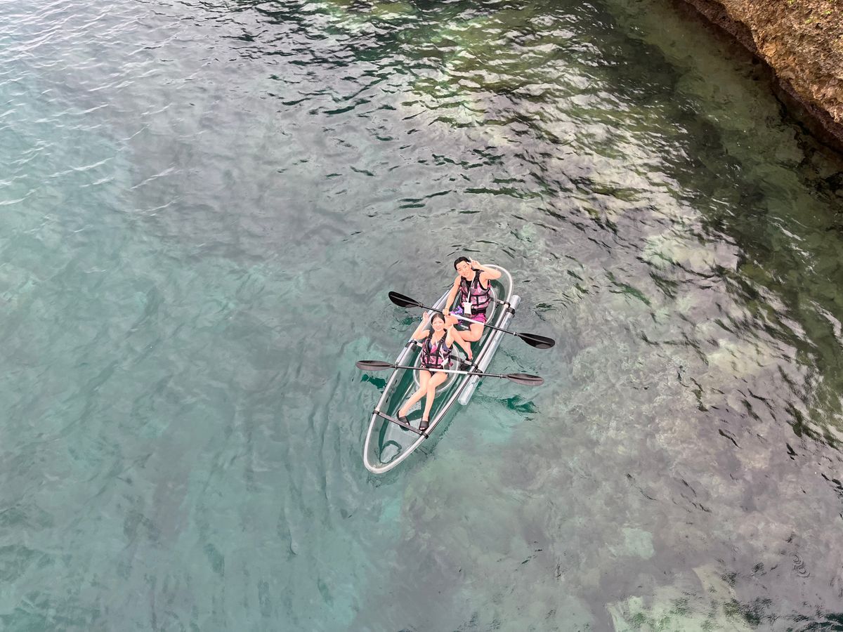 海の底まで見えるクリアカヤック体験はとても神秘的で、初めての経験ができてすごく楽しかったです。途中であいにくの雨に見舞われてしまいましたが、インストラクターの方々が柔軟に対応してくださったのでとても楽しむことが出来ました。また、最後にはドローンでの撮影もしていただき、動画まで作っていただき大満足100点満点のツアーでした!また宮古島を訪れる機会があった際には、サップ等の別のアクティビティも是非体験してみたいと思いました!