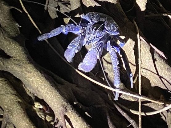 ヤシガニとムラサキオカヤドカリを見たくて夫婦で参加しました。ヤシガニハンターの方が夜の森を案内してくれて、ちょっとした探検気分でした。
