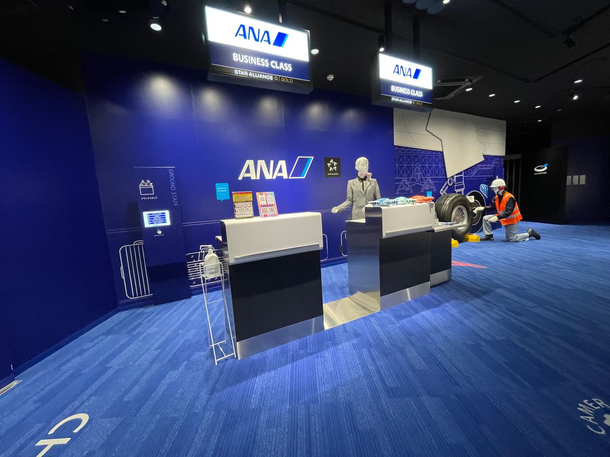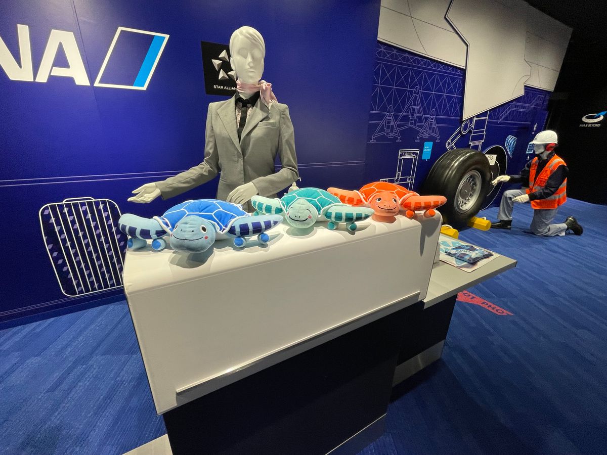 ANAの歴史や豆知識のほか、クルーが重ねる弛まぬ努力の一端を感じられます。ロッカーは各空港の3レターコードになっており、知識もインプットされます!穴守稲荷駅から歩いて約10分のところにある、ANA Blue Baseは、ANAグループ社員の総合訓練施設になっています。コックピットクルーやキャビンクルー、グランドスタッフ、グランドハンドリングといった航空機の運航に不可欠な様々な職種の方が定期的に訓練に訪れます。グランドスタッフのバッジなどが展示されてあり、見どころたくさんです!昨日(1/30)は、ソラシドエアの社員が訓練に訪れていました。ANAの客室乗務員が案内してくれました。