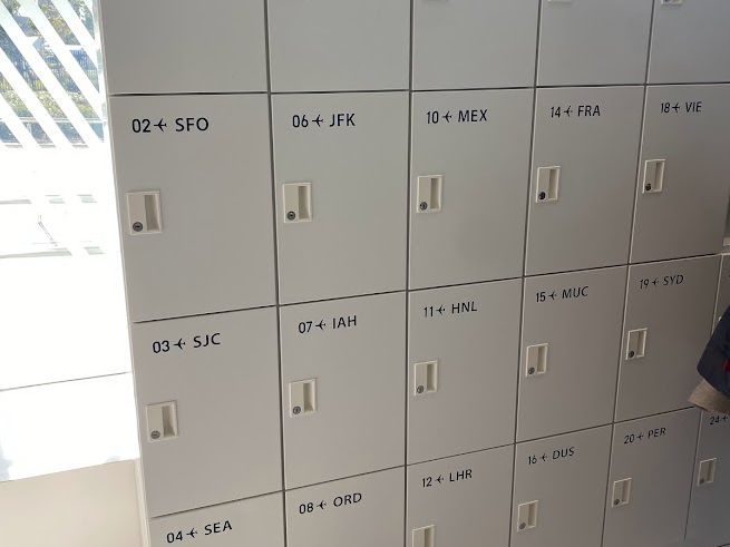 大きな荷物は入り口の空港名の書かれたロッカーに預けられるので気分があがります。