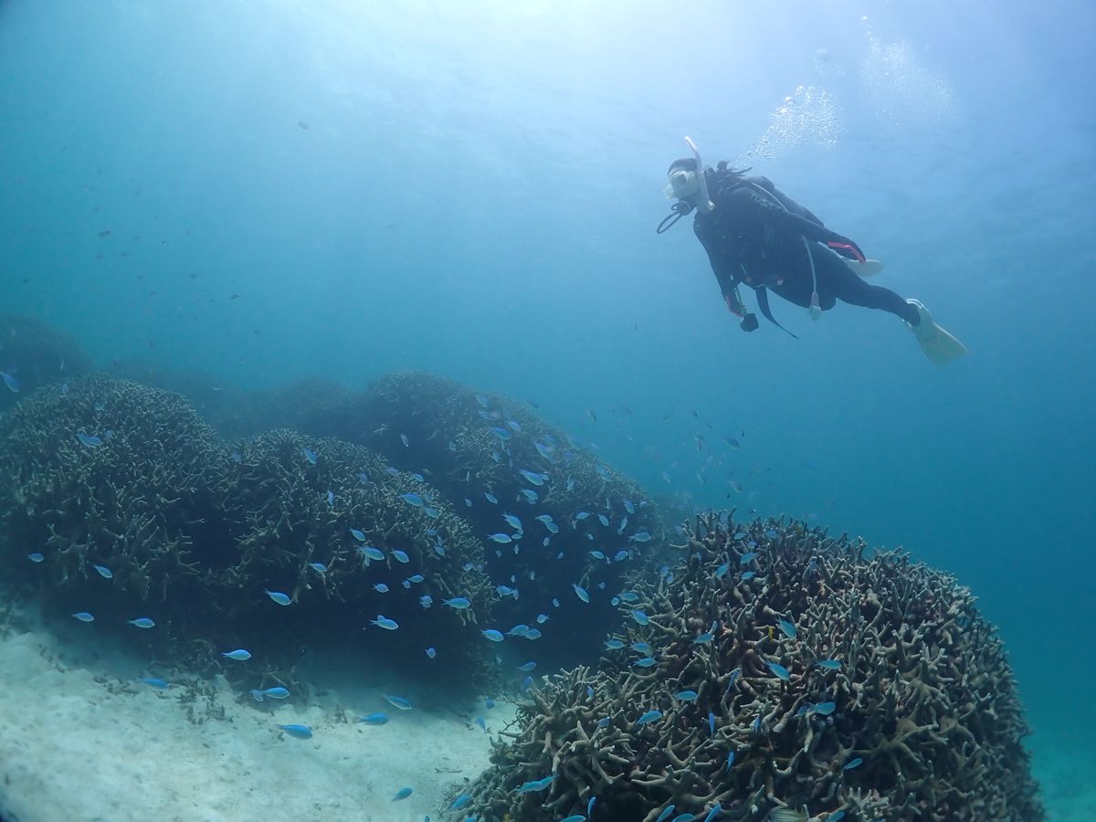 当日は、陸での事前説明や装具の扱い方、トラブルへの対処法に加え、海面でも呼吸等のチェックがあり、とにかく丁寧に教えていただき安心して潜ることができました。耳抜きも克服できたと思います!
