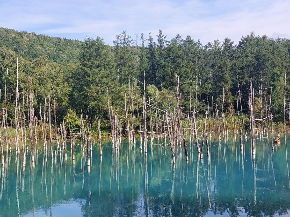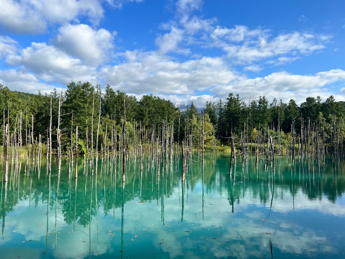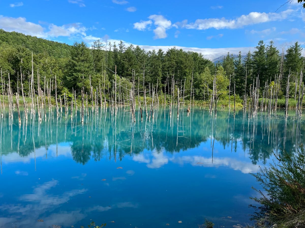 青い池は道がガタガタなので歩きやすい靴で行ったほうがいいなと思いました。ソフトクリームが美味しかったです。