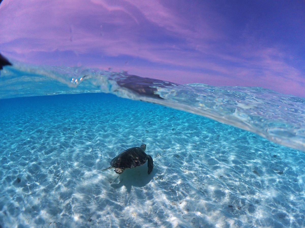 幻の島は周囲をエメラルドグリーンの海に囲まれ、とても綺麗で感動。徐々に水面下になる島の一部を繰り返し波が通り抜けてゆく様子が気持ち良くずっと見ていたい感じでした。