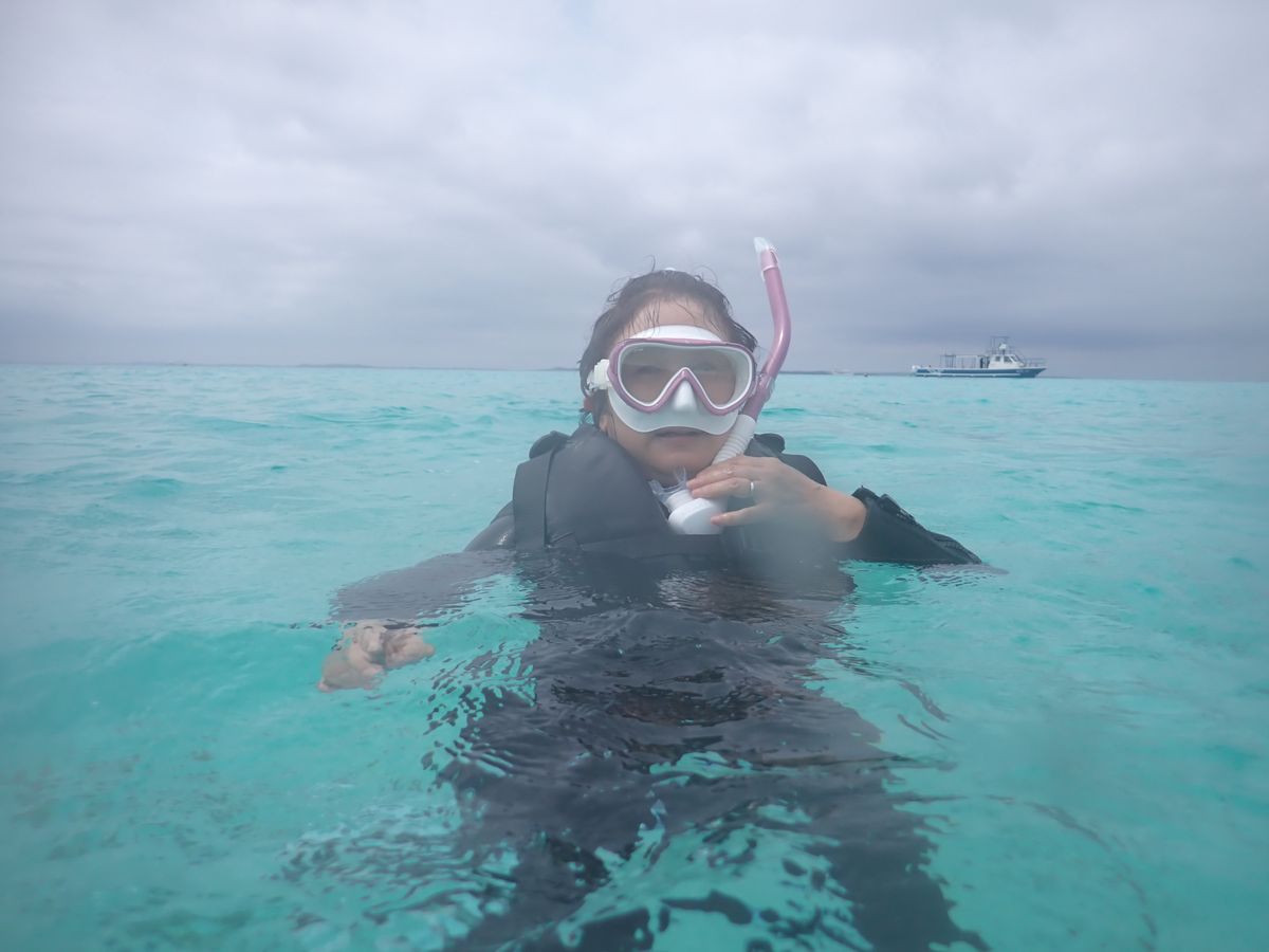 島に到着した後は、写真映えするような看板を用意してくれたり、シュノーケリングの道具(ウェットスーツ、フィン、ゴーグル、ライフジャケット)も無料で貸し出し可能でした。
