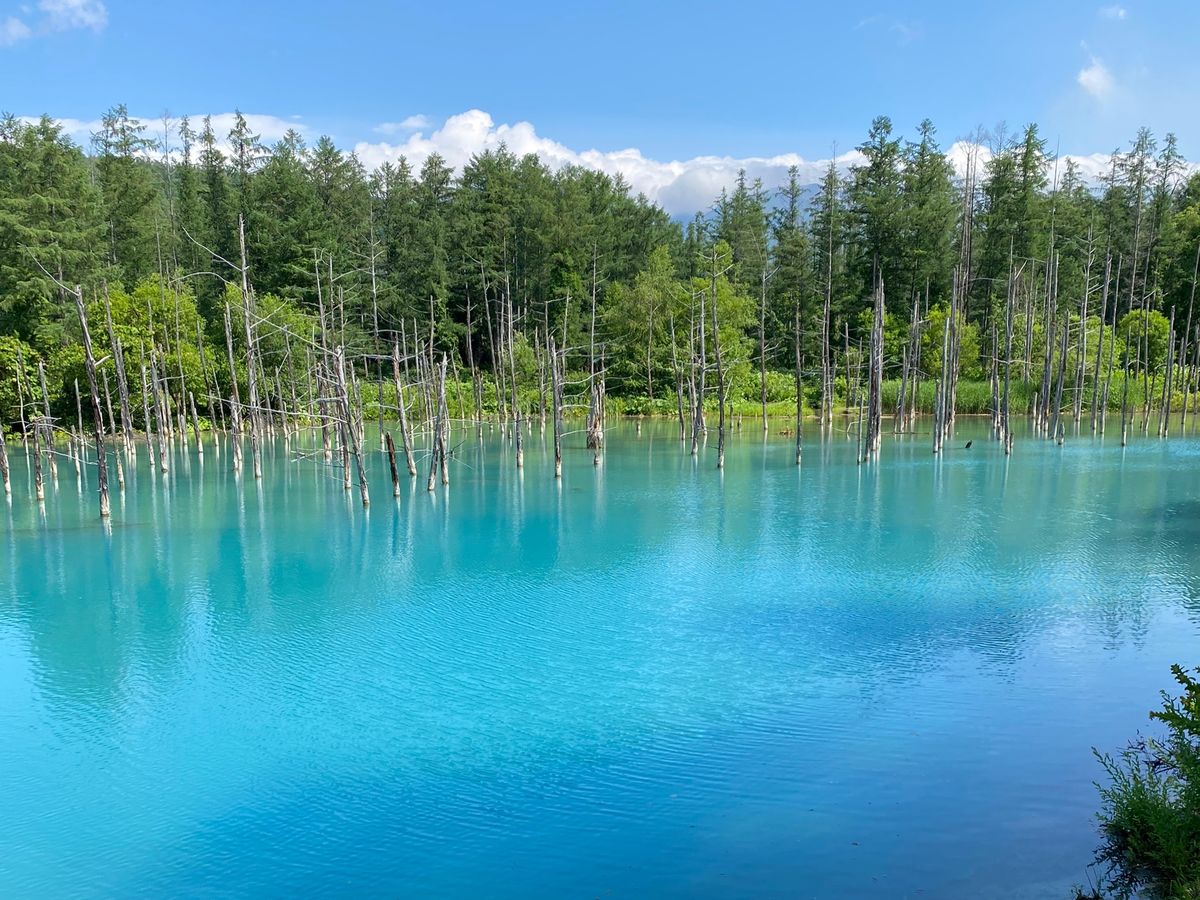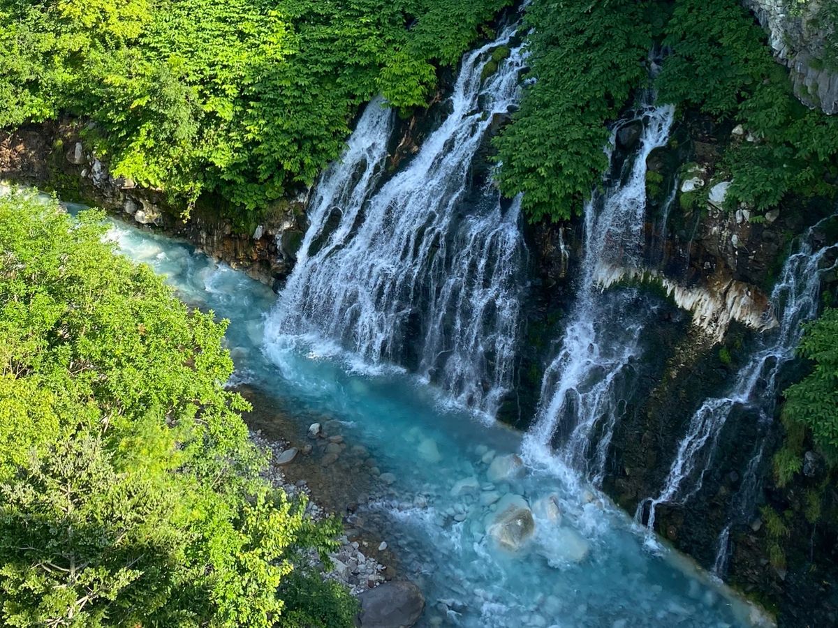 青い池は想像していた通り、すごく綺麗でしてが、白ひげの滝は、周りの風景や川の水の色など、思っていた以上に感動しました。