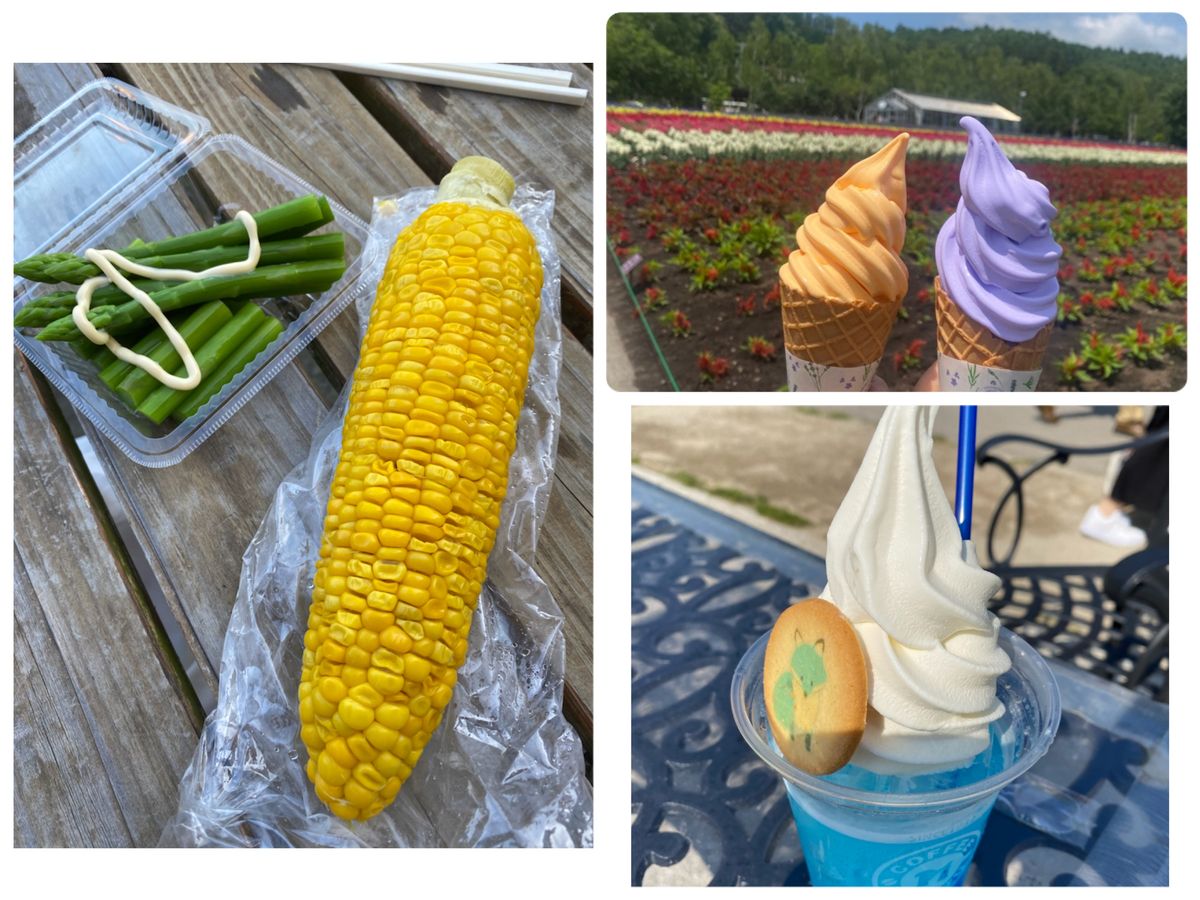 美味しい食べ物もいっぱいで、今はバスの中で食べることができない為、観光の後、大慌てでソフトクリームやコロッケ、モロコシなど買って食べ、物凄く美味しかったですが、