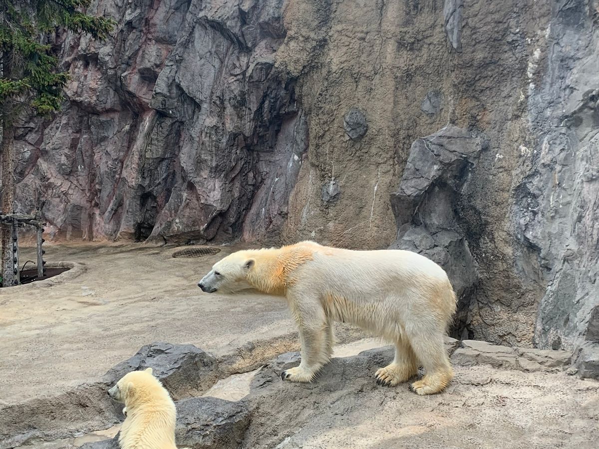 北極クマ 母グマと赤ちゃんの授乳シーン見れました。 オラウータンやキリンのもぐもぐお食事タイムは担当飼育員さんの解説も聞けて、楽しい&新しい発見にもなります!