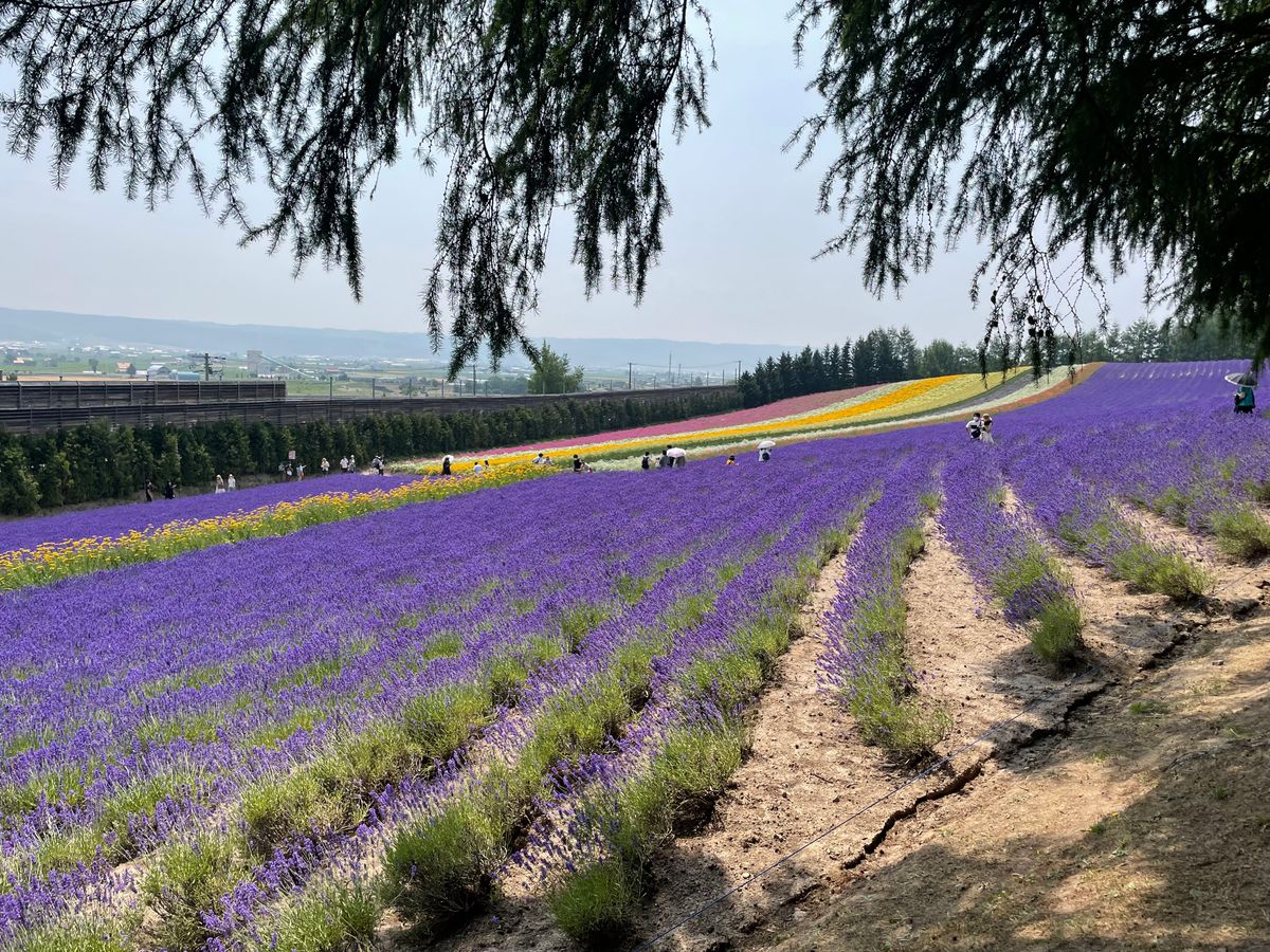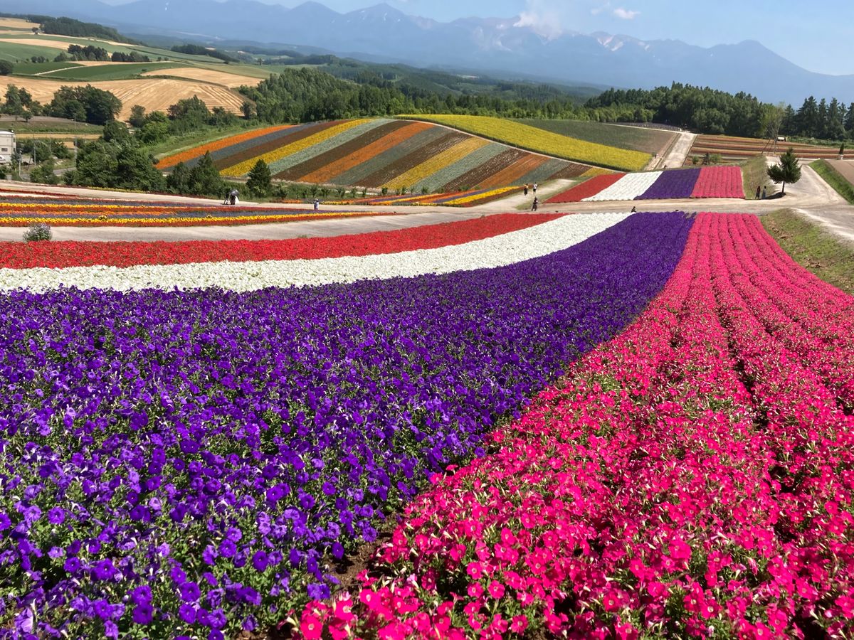 富良野駅発で、行きたいところを回ってくれたので助かりました。 曇り空だったので23度前後 楽に観光出来ました。 ファーム富田での時間は長めですが、ショップで買い物したり、メロンやアイスを食べたい人は スタスタ歩いた方がいいです。