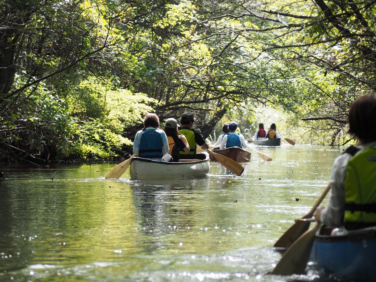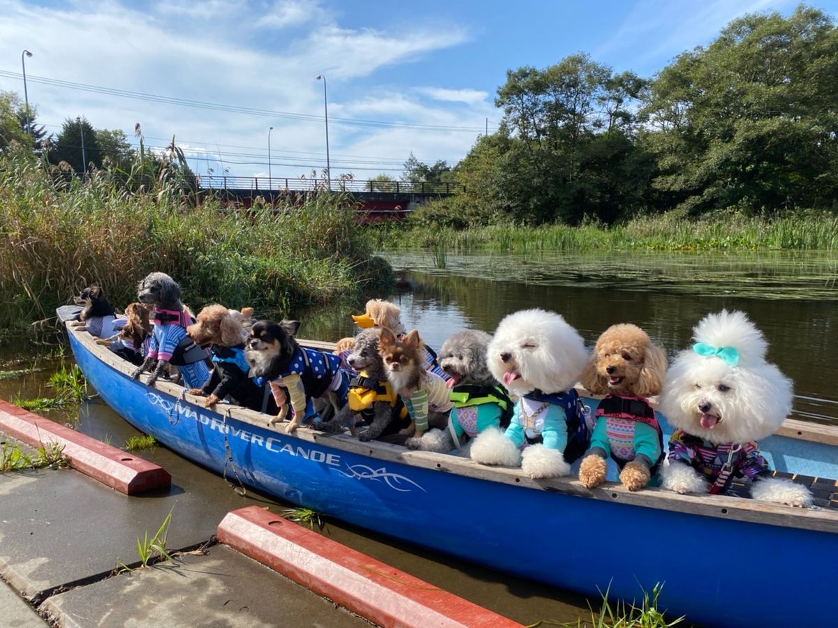 9月に16名プラス犬19匹で参加させてもらいました。わんちゃんと一緒にカヌーが出来る上、参加費無料な所が嬉しいです。初めにしっかりレクチャーがあり初めての参加される方も安心です。前半は穏やかな川を下り、ここで操作を覚えます。わんちゃん達は飼い主の膝の上に乗っているかカヌーの中で座っていたりとみんな大人しくしていました。白鳥も間近に見ることが出来たので嬉しかったです。後半のジャングルコースは川幅が狭く、左右の木に突っ込んでしまいますので油断出来ませんが森林に囲まれた中、木漏れ日でキラキラと光る川を漕ぎ、とても気持ち良くて感動しました。フルコースは約4キロと長いので途中腕が辛くなったりしましたが日常生活から離れ自然を満喫できて楽しかったです。