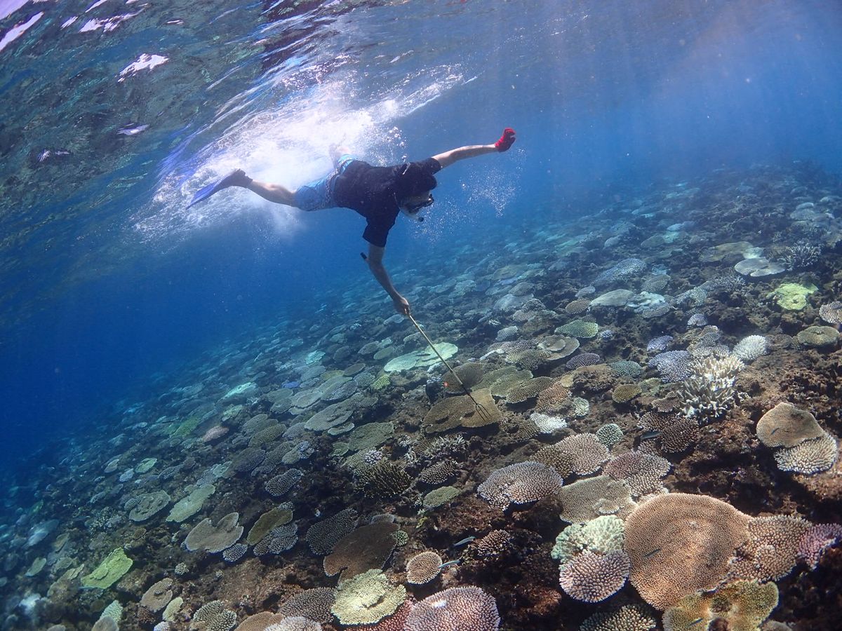 シュノーケリングポイントも他ツアー会社さんの姿も見えない、且つ珊瑚も綺麗なポイントに。