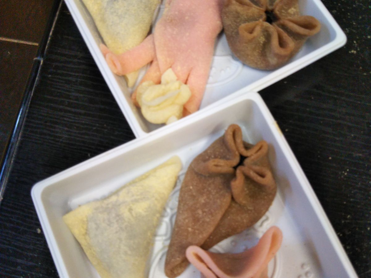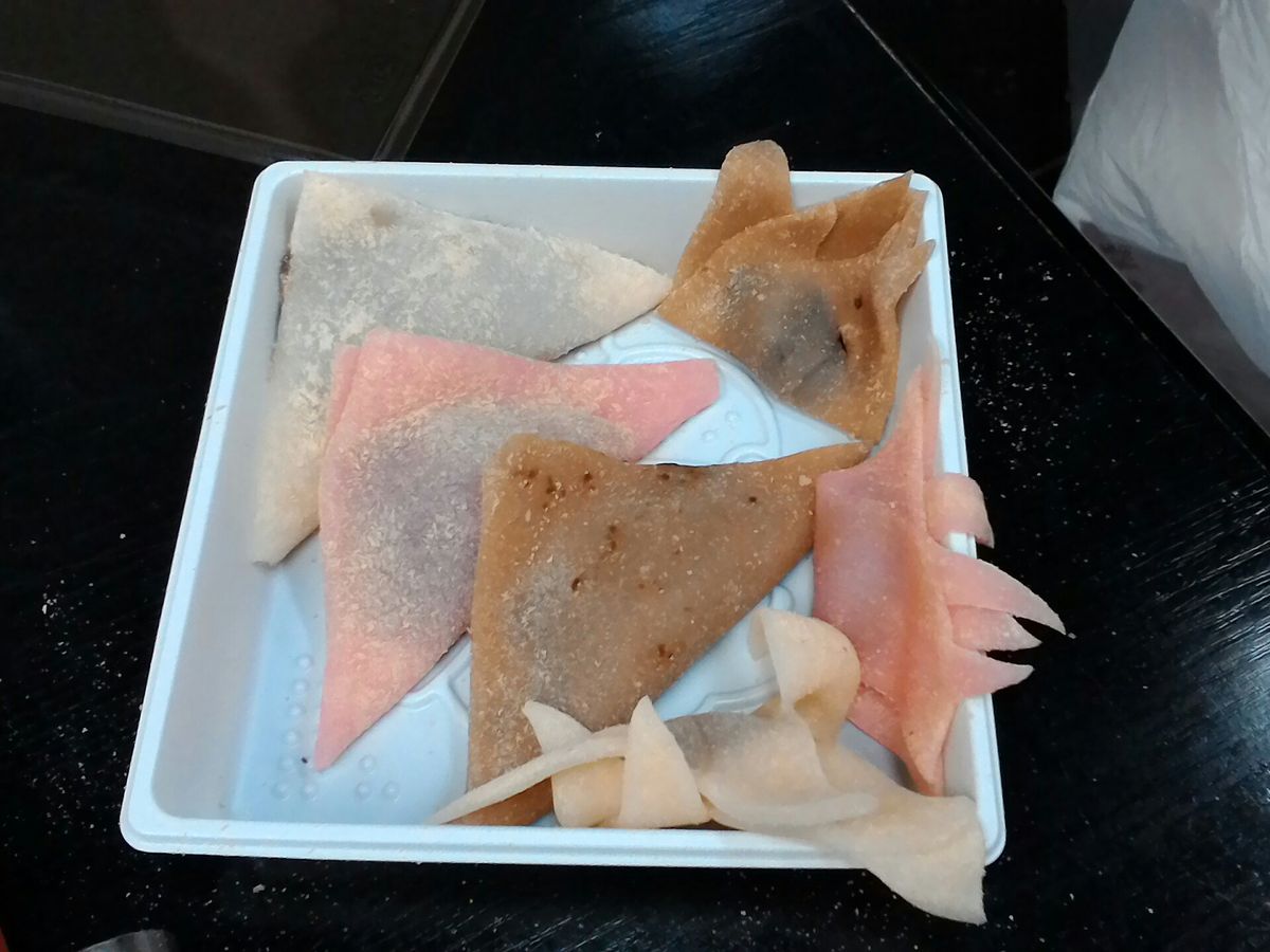初めての生八つ橋作りは意外と(?)簡単かと思いきや、形作りに苦労しました。入った印象は、キレイめなとこなんですが、説明が意外と雑でした(笑)でも、生地をこねこねこねこねしっかりしないと、次の伸ばす工程でなかなかのびてくれません。説明では30回ほど伸ばしてたたむのを繰り返せばいいといわれましたが、たぶん、その倍かもっとこねないとなかなか生地がやわらかくなりませんでした。そして、大事な三角形にたたむために、キレイな四角の形にするところが、難しくて、生地を薄くしすぎてぐねってしまいました。また、アンは種類がチョコ、いちご、つぶあんとありましたが、もっとフレーバー増やして選べたらいいのになと思いました。値段の割にはいいのかなと思いますが、八つ橋も3つしか作れないのでもっと数が作れればお土産として配れていいなと思います。2階のお土産コーナーには八つ橋とかシュークリームとかも売ってました。全体的には良かったと思いますが、次回もし行くことがあれば、とにかくフレーバーを増やして、選べれたら最高です!(実はあんこが苦手なので笑)