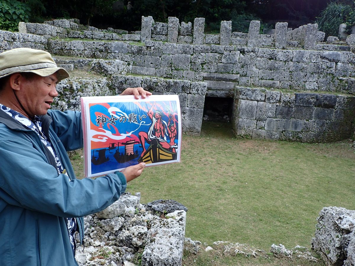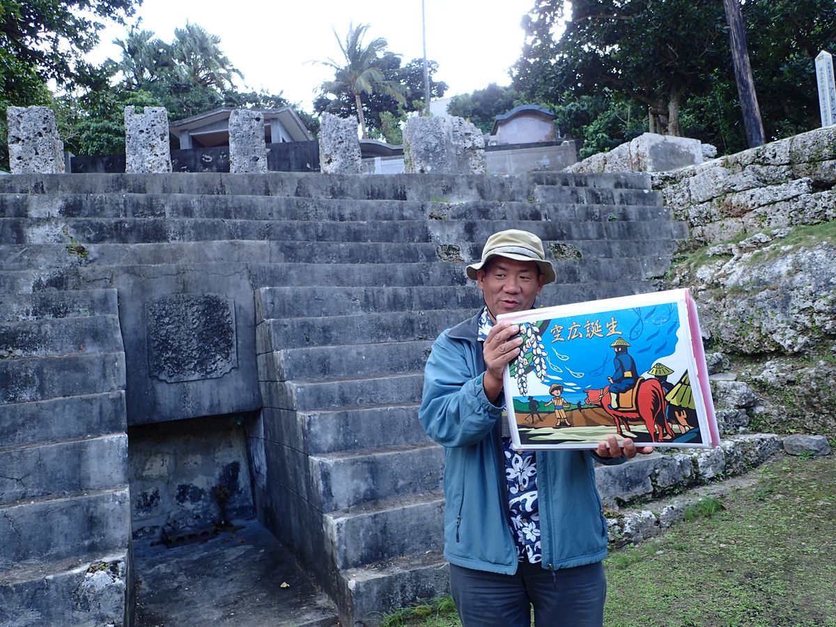 要所要所では宮古島の歴史のお話や偉人のお話を紙芝居で見せながら聞かせて頂きました。