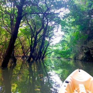 あいにく晴天ではなく、少々残念な気持ちでしたが、ガイドさんの「カヌーには最適な天気」という言葉を信じて川を漕ぎました。マングローブに到着した時には、風もなく、水に映る木々の美しさと静けさに感動しました。行き帰りに西表島のことや楽しいお話をしてくださって、あっという間の時間でした。ありがとうございます。