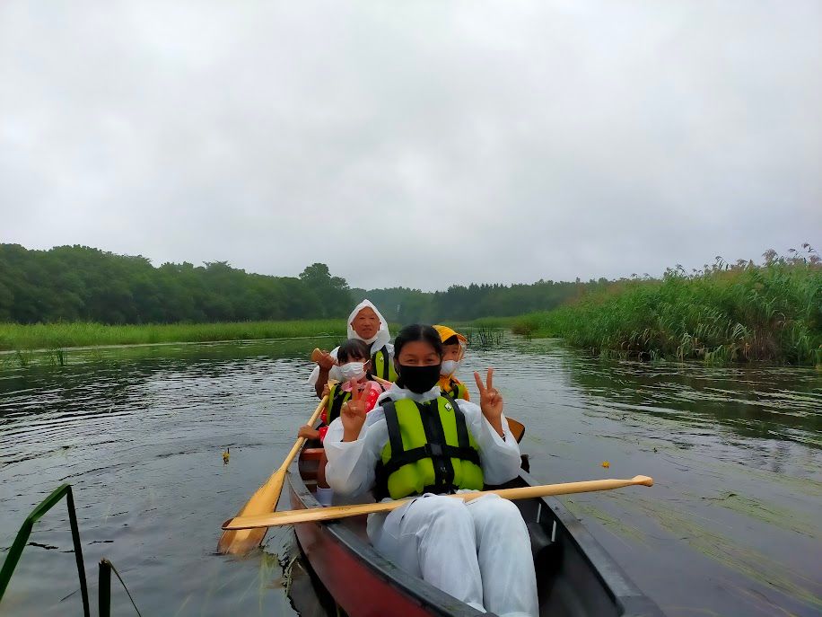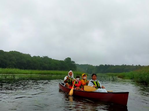 カヌーで終点まで行ったあと、ワゴン車に参加者すべてが乗って帰ります。参加当日は4家族が参加し、子供を含め全部で12人いたと思います。雨が降ったせいもありますが、1台の締め切った車に乗り込んで出発地点まで帰りました。