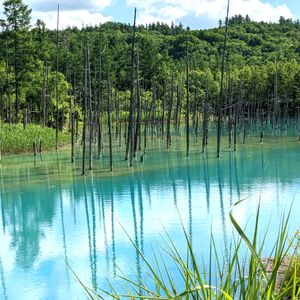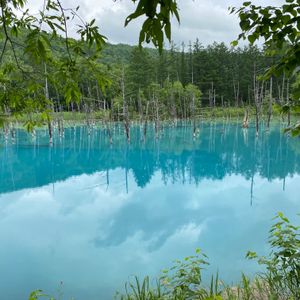 青い池は天気によって見え方がだいぶ変わりますが写真はすごいきれいな青ですね。