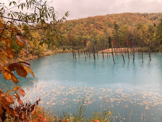 青い池は、天気はあまり良くなかったけど、青くてキレイに見えました。