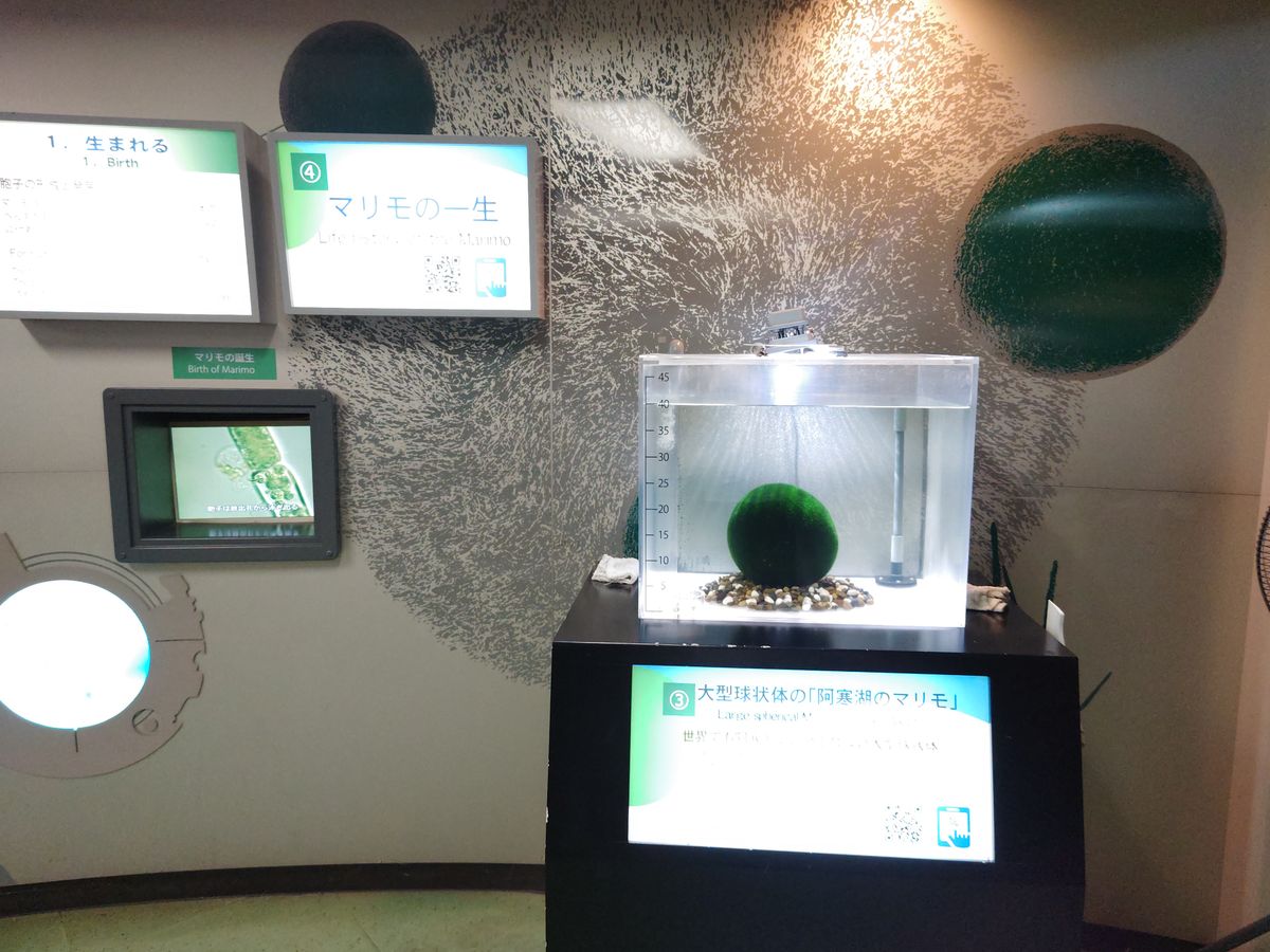 窓口にてバウチャーを提示すると次の便に乗船できました。船の席数はたくさんあったので希望の便に乗船できましたが、利用したときは中国人の観光客を見かけましたので、これから混雑していくのかもしれません。季節によりますが、朝8時から夕方4時まで1時間に1本の割合で出航していました。大島を左に眺めて十九島、滝口へ、船内アナウンスで島の説明がありました。ここは船からでなければ見られないポイントだと思います。そして、チュウルイ島にあるマリモ展示観察センターで天然記念物のマリモを観察しました。特別天然記念物であるマリモを観察でき、生態についても学べました。阿寒湖には何と6億個以上、大小のあるマリモが生息しているそうです。世界的に見ても阿寒湖は凄いところだと思いました。