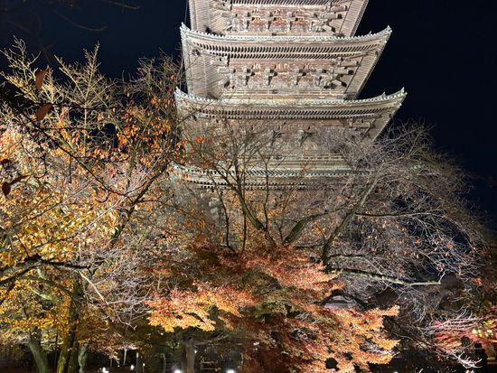 初めての紅葉ライトアップバスツアーでした。知恩院と東寺最高でした。東寺は人が多くてびっくりしました。バスガイドさんの説明と聞きながら最高の一日になりました。