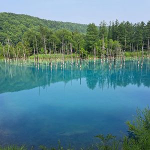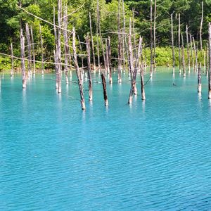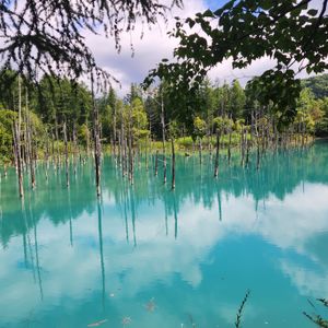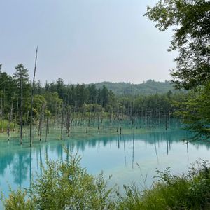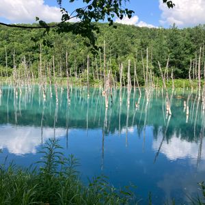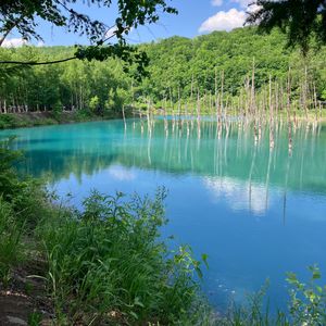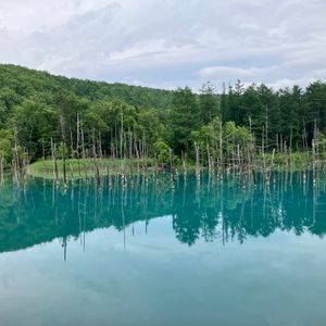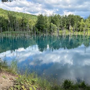 青い池は幻想的。シーンと静まりかえった環境でも見てみたい。