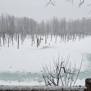 青い池は水面が凍ってその上に雪が積もっていたため、白い池になっていましたが冬季ならではの景色だと思います。