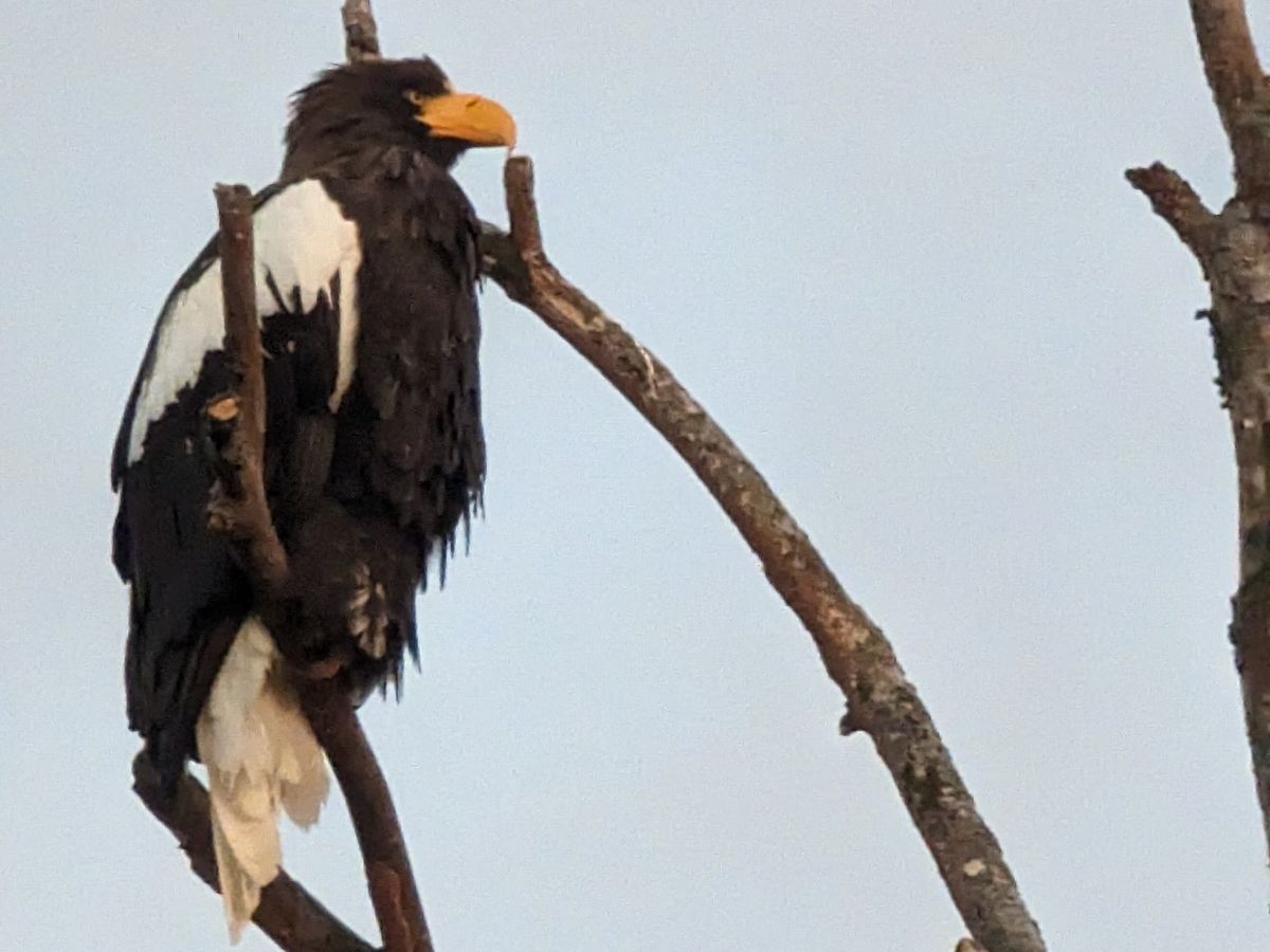 オジロワシ、オオワシの羽を広げた姿や、枝で休んでいる姿は凛とした姿で、大物感でした。