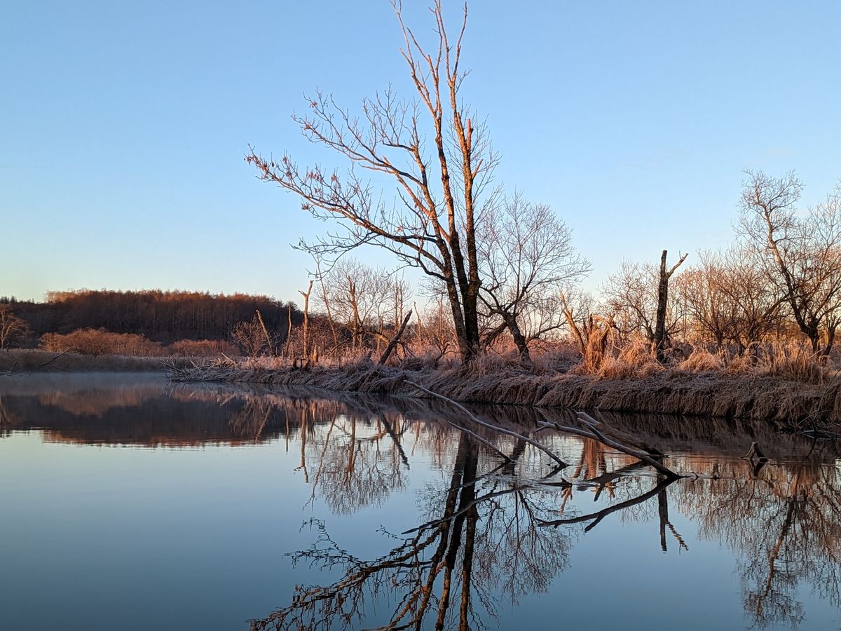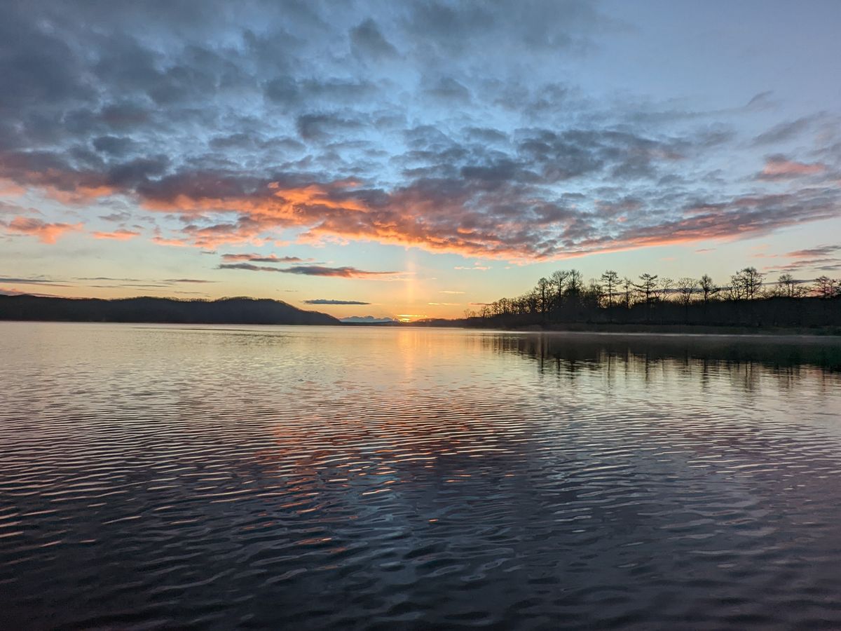 早朝の日の出もとてもきれいで、無風だったたので、水面に映った感じは写真で撮影したらとてもきれいでした。