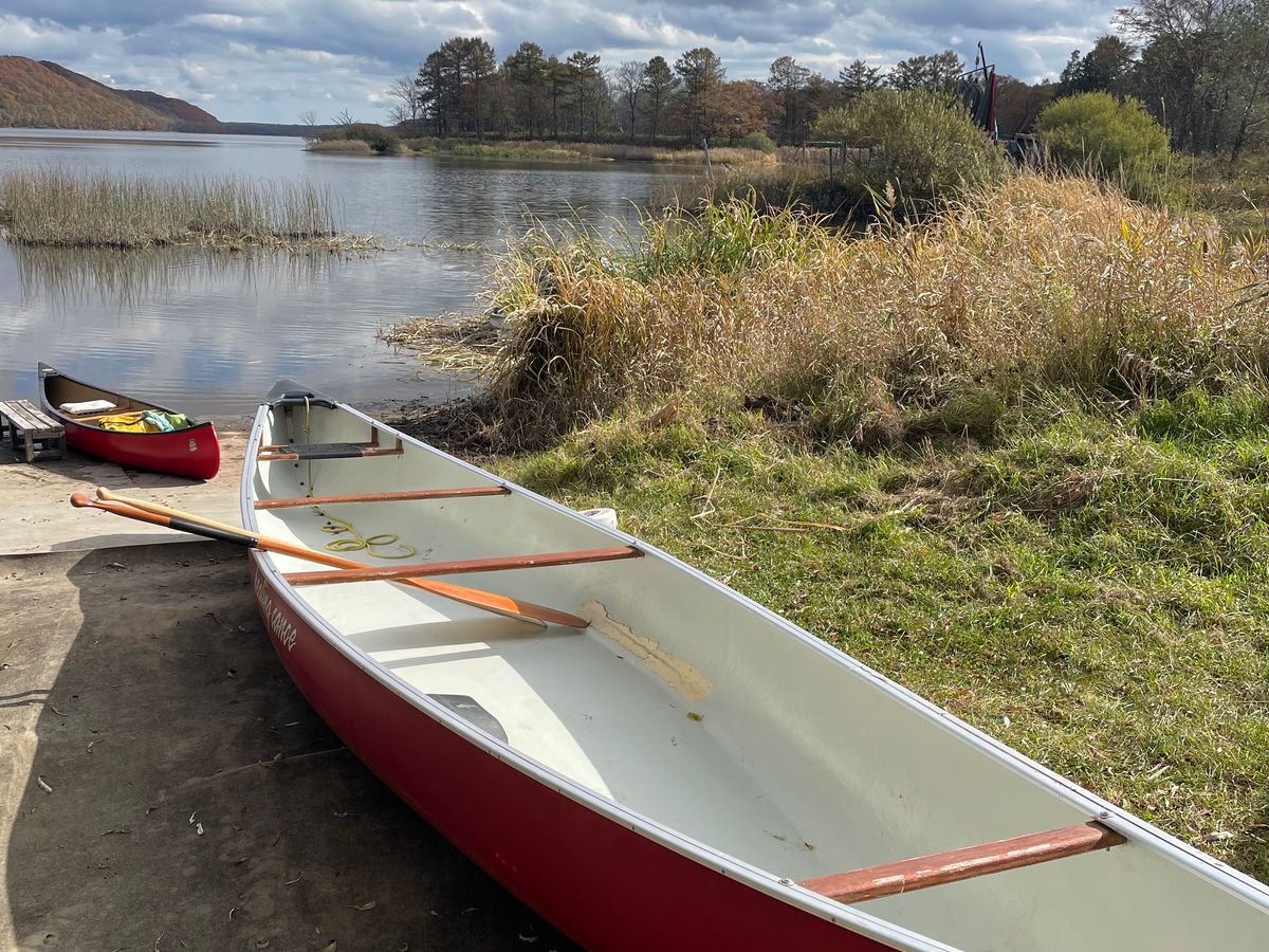 カヌーは、下半身がパドルの水が滴って濡れるので、濡れても良い服か、着替えがあると良いです。